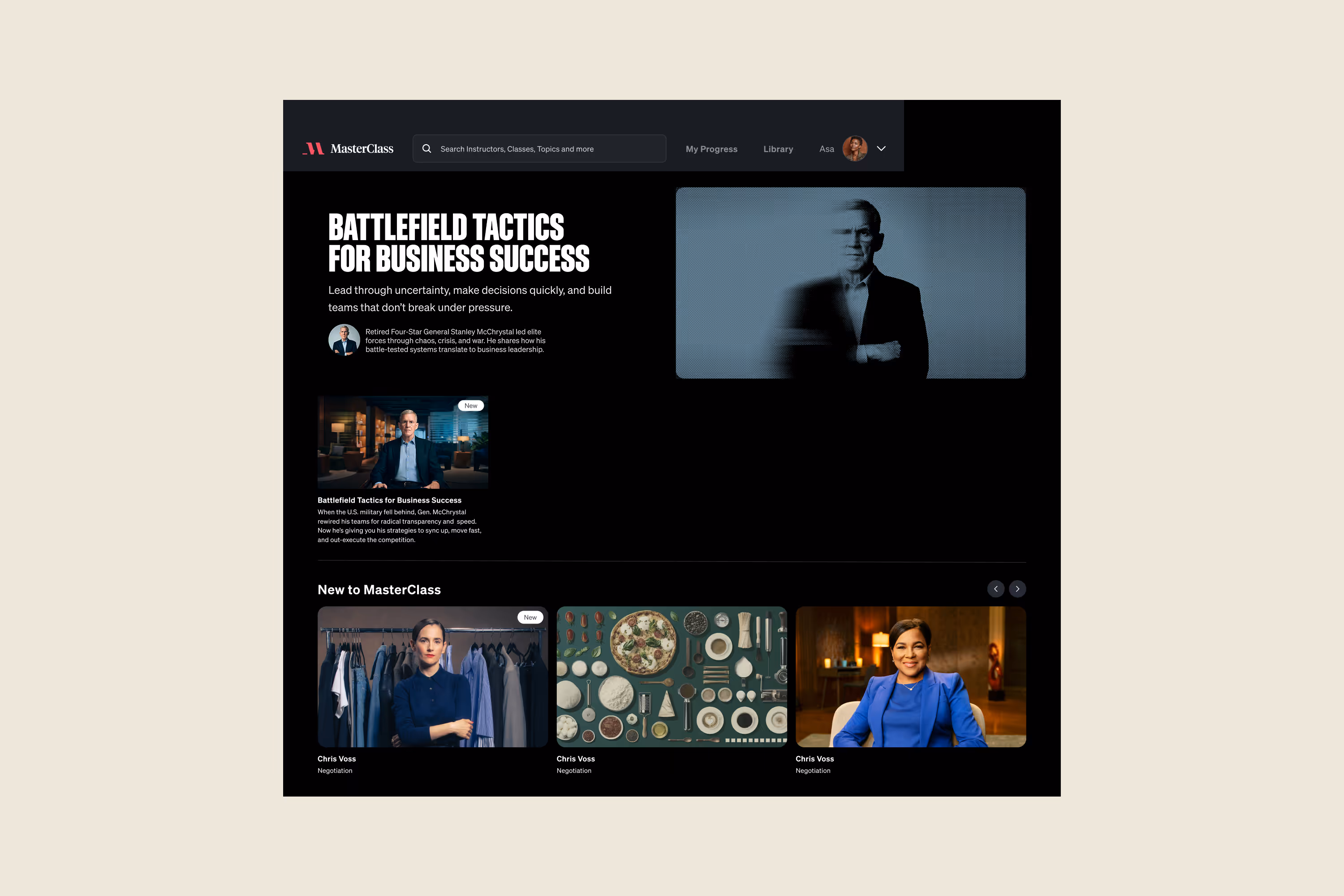 In developing MasterClass launch art directions, I've built custom GPTs to ensure realism and diversity in prompts, gut-check concepts, and evaluate originality against audience insights and competitors, while also filling gaps where traditional stock imagery falls short. AI supports the creation of dynamic key art for more abstract class concepts and helps accelerate exploration when timelines are tight, without compromising the integrity of the work. Used strategically, AI can strengthen creative processes without replacing the thinking behind it.